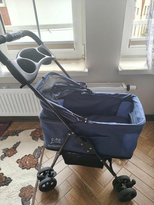 Sprzedam wózek do Pieska max 15 kg - wymiary gondoli szer.31 cm; dł.56 cm; gł.21 cm; wys.98 cm raz użyty możliwość ...